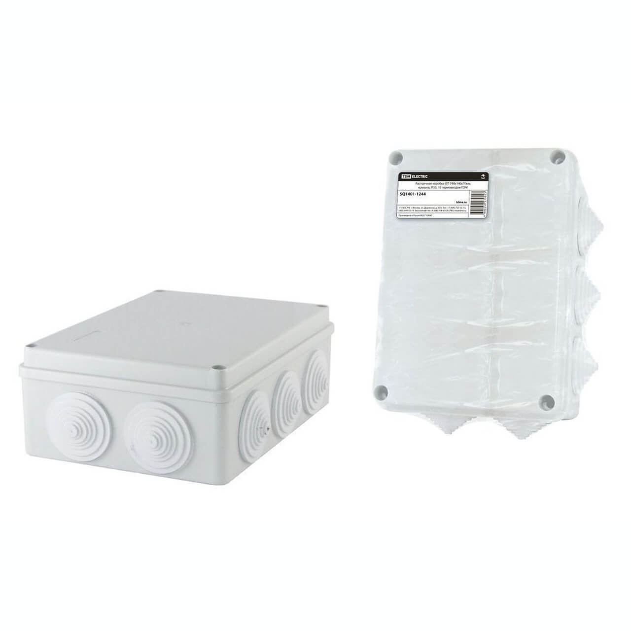 190х140х 70мм, крышка, IP55, 10 гермовводов, инд. штрихкод, распаячная коробка ОП TDM