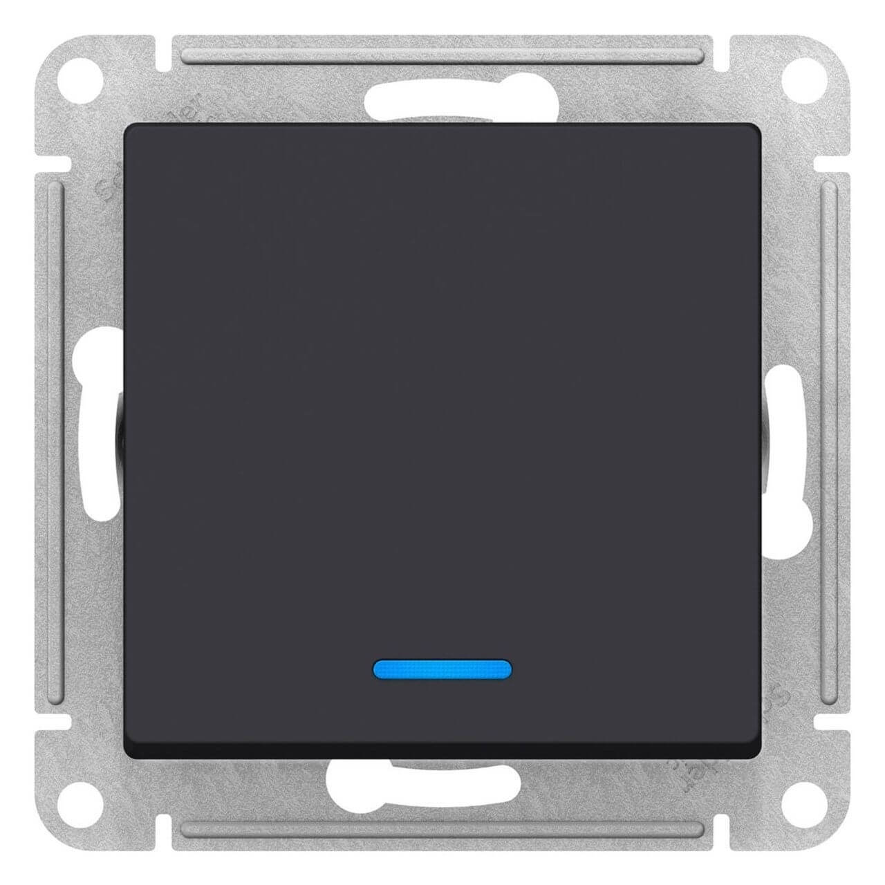 Выключатель 1-клавишный с подсветкой карбонового матового цвета. Без рамки