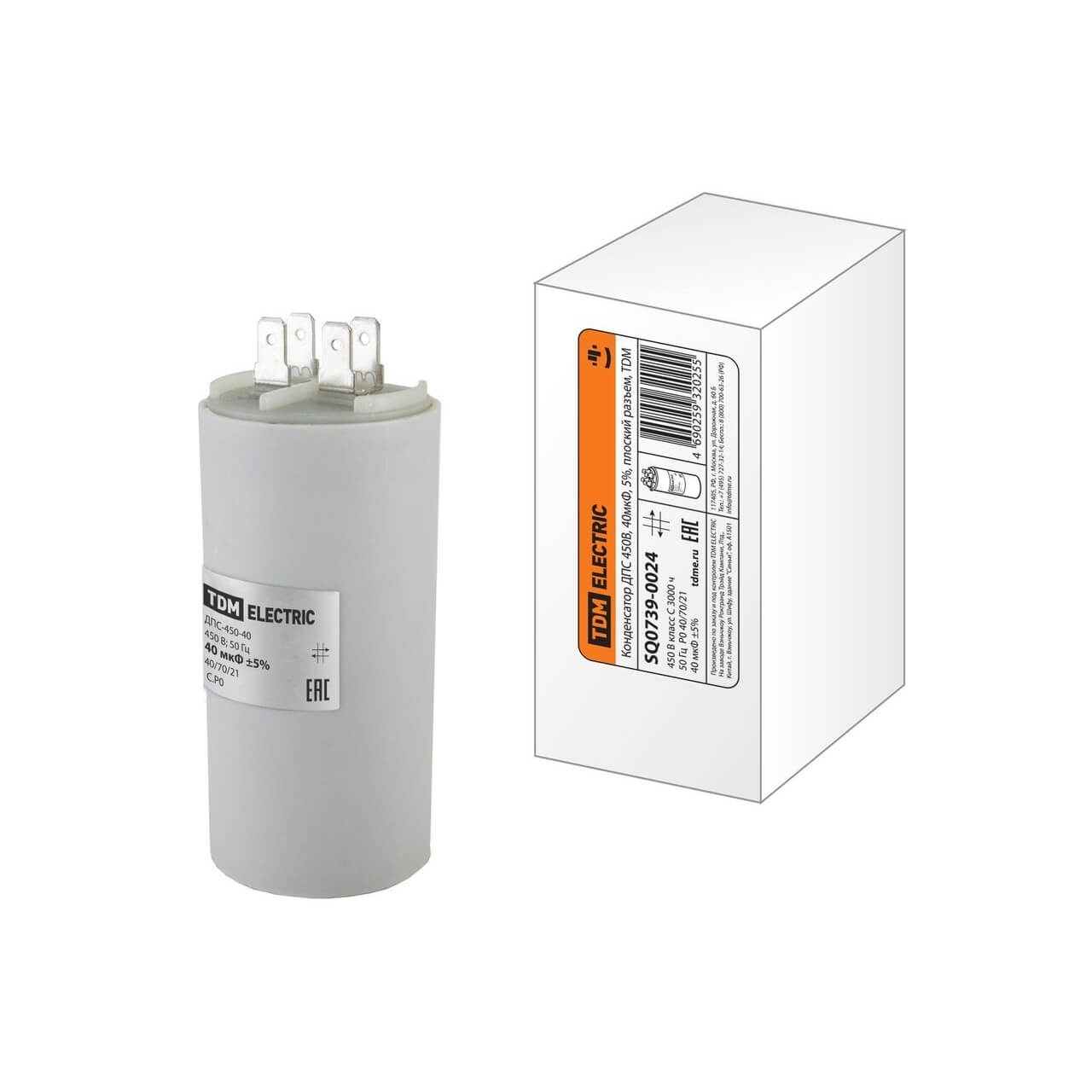 Конденсатор ДПС 450В, 40мкФ, 5%, плоский разъем, TDM