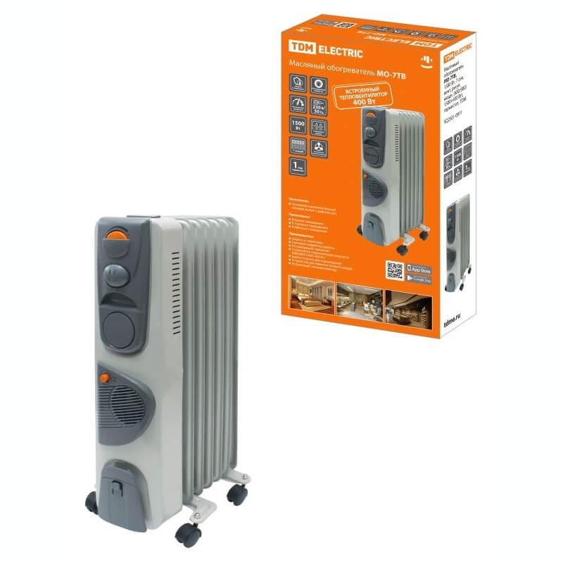 Вы можете купить Масл. обогрев. МО-7ТВ, 1500 Вт, 7 сек, вент, регул. мощн. (600/900/1500+400 Вт), термостат, TDM недорого в компании «Энергоснабмонтаж» – электрооборудование в Барановичах по доступным ценам.