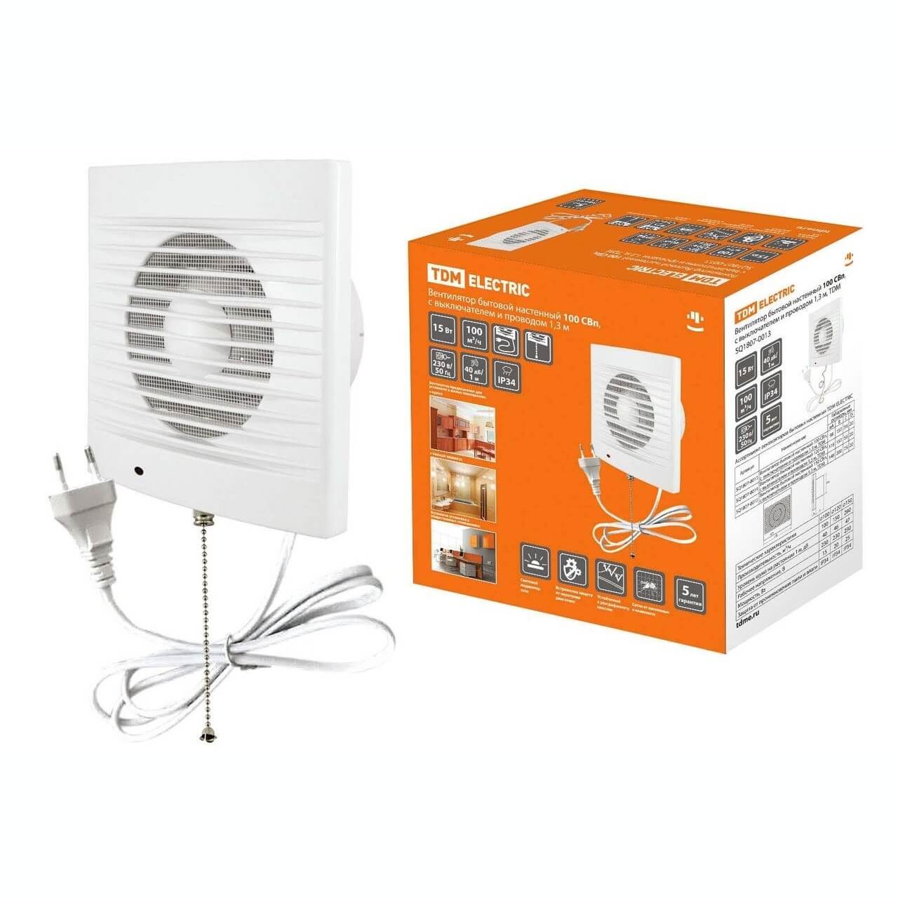 Вентилятор бытовой настенный 100 СВп, с выключателем и проводом 1, 3 м, TDM