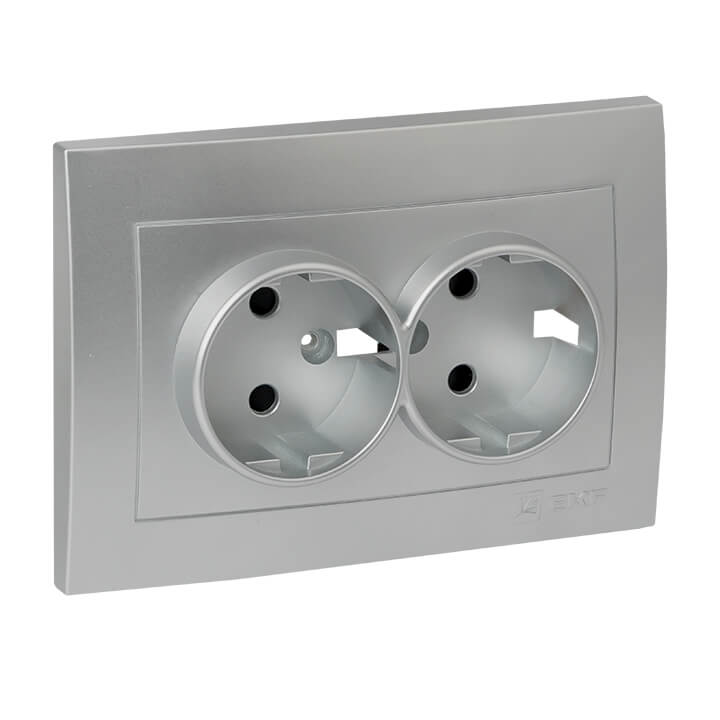 Валенсия лиц. панель розетки 2-местной с/з 16А сталь с защ. штор. EKF PROxima314443-1.jpg
