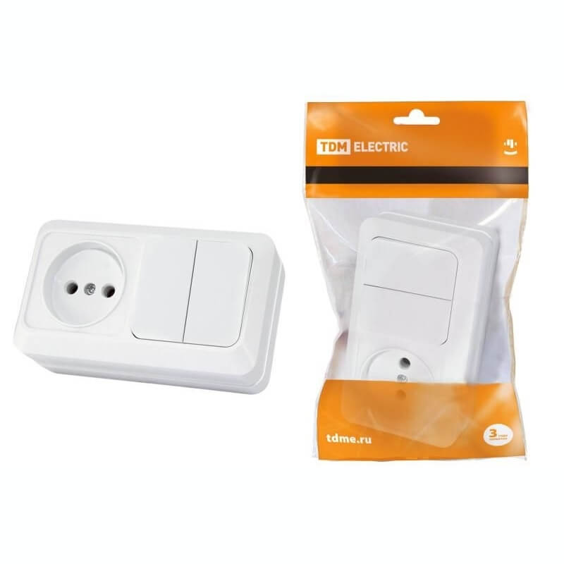 Вы можете купить Блок комбинированный выкл. 2-кл. 10А + розетка 2П 10А 250В БКВР IP20 белый Ладога TDM недорого в компании «Энергоснабмонтаж» – электрооборудование в Барановичах по доступным ценам.