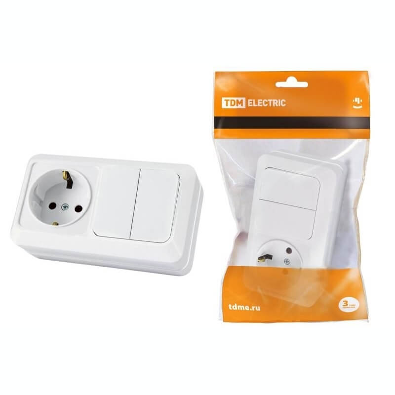 Вы можете купить Блок комбинированный выкл. 2-кл. 10А + розетка 2П+З 16А 250В БКВР IP20 белый Ладога TDM недорого в компании «Энергоснабмонтаж» – электрооборудование в Барановичах по доступным ценам.