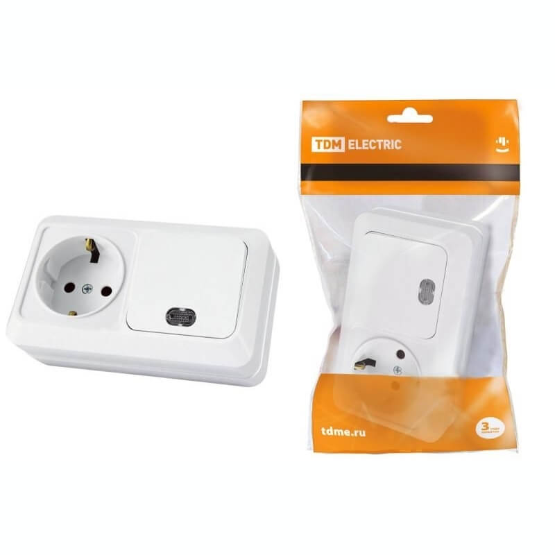 Вы можете купить Блок комбинированный выключатель 1-кл. с подсветкой 10А + розетка 2П+З 16А 250В БКВР IP20 белый Ладога TDM недорого в компании «Энергоснабмонтаж» – электрооборудование в Барановичах по доступным ценам.