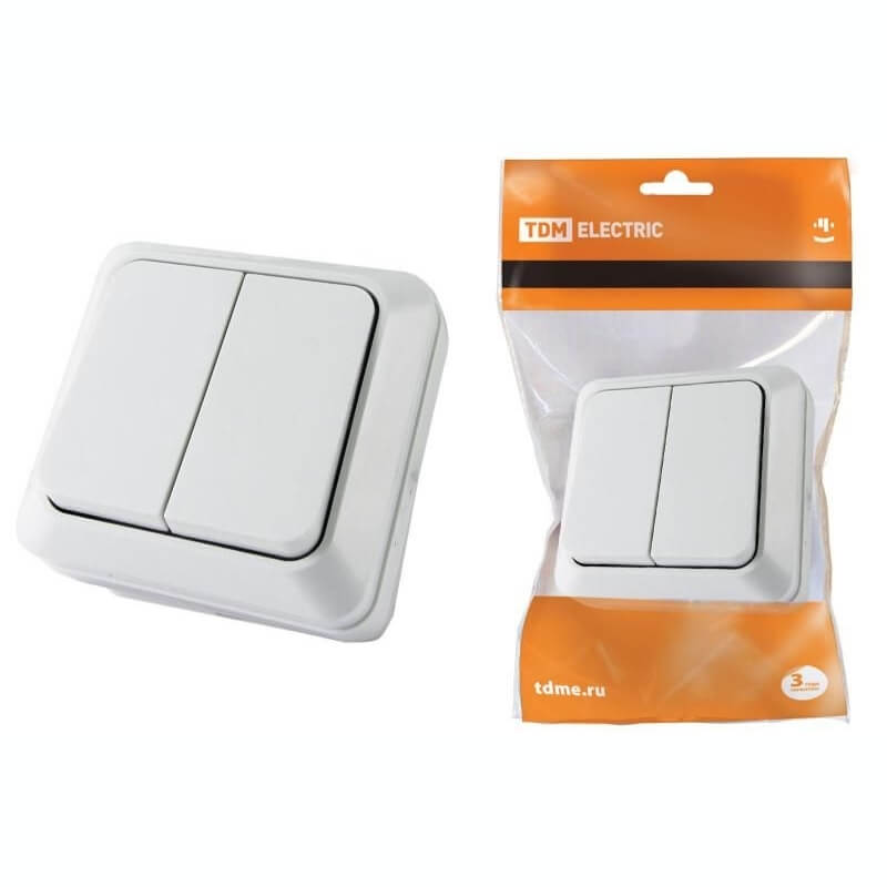 Вы можете купить Выключатель 2-кл. открытой установки IP20 10А, белый Ладога TDM недорого в компании «Энергоснабмонтаж» – электрооборудование в Барановичах по доступным ценам.