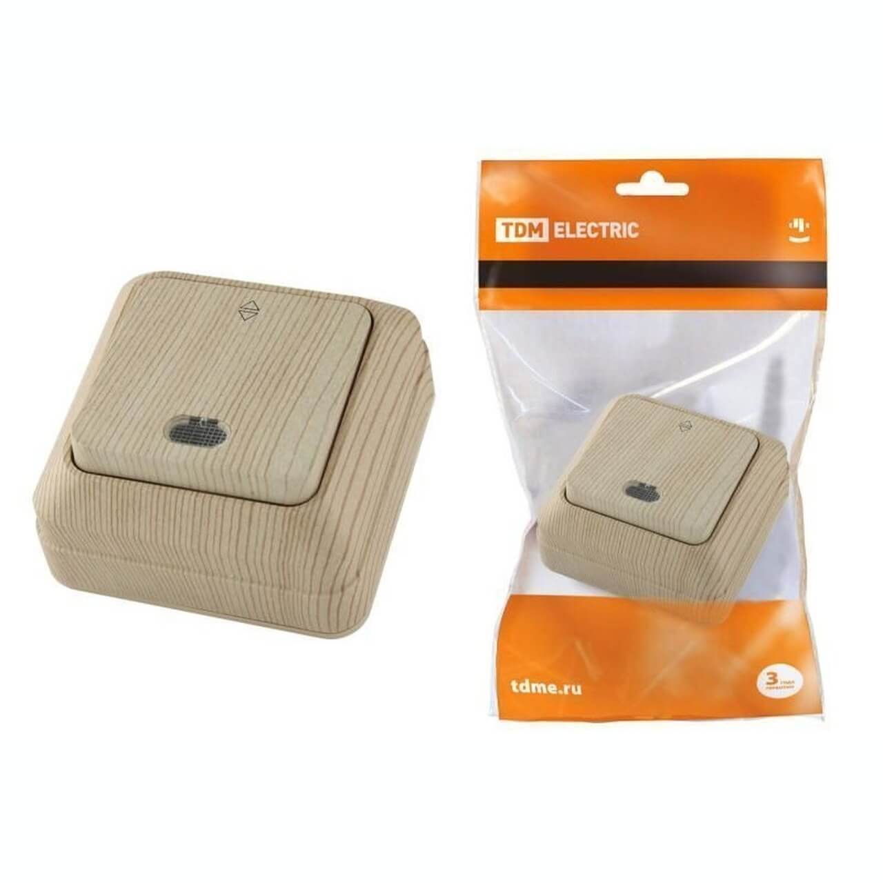 Вы можете купить Переключатель на 2 направления 1-кл. открытой установки с подсветкой IP20 10А, сосна Ладога TDM недорого в компании «Энергоснабмонтаж» – электрооборудование в Барановичах по доступным ценам.