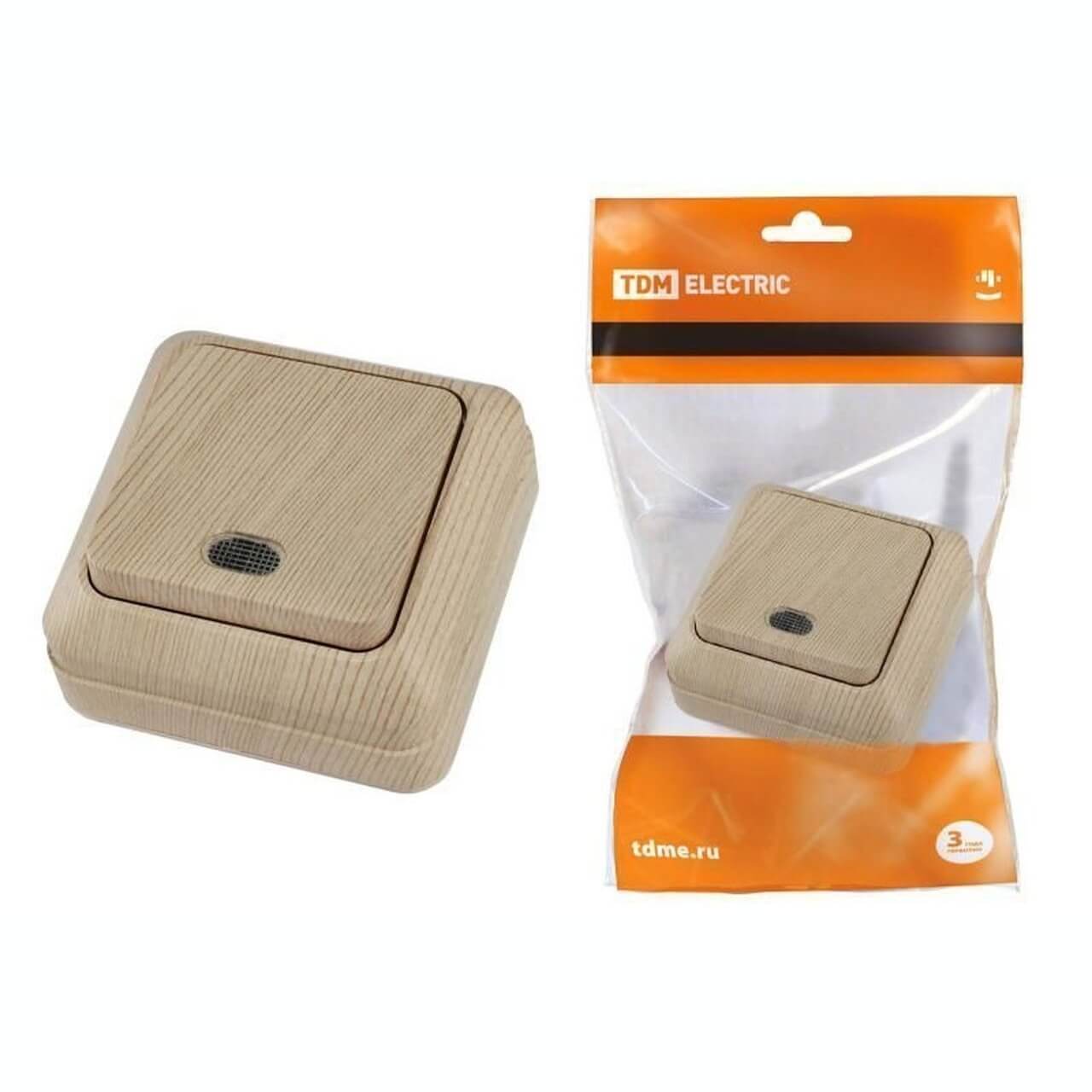 Выключатель 1-кл. открытой установки с подсветкой IP20 10А, сосна Ладога TDM