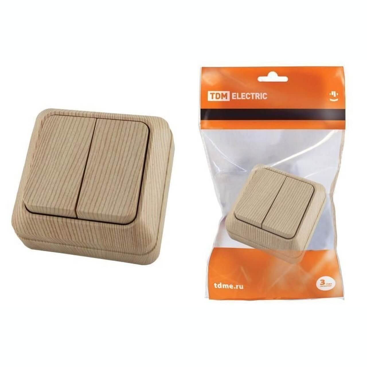Выключатель 2-кл. открытой установки IP20 10А, сосна Ладога TDM