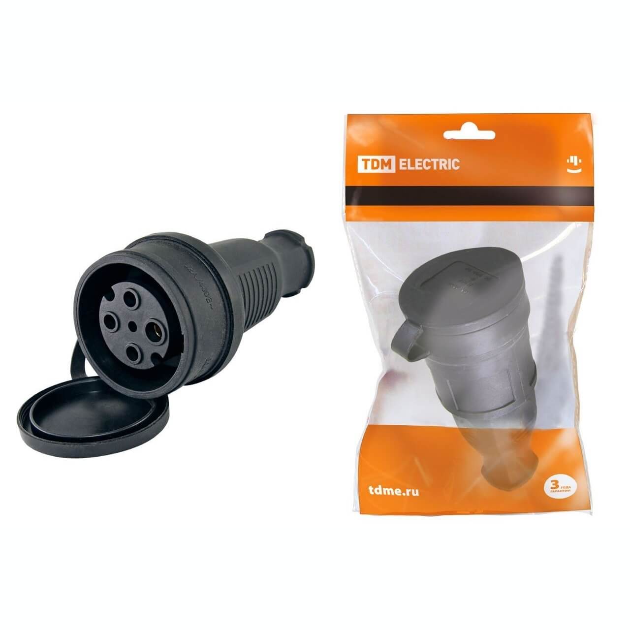 Разъем с заглушкой каучук 3Р+РЕ 32А 380В IP44 TDM