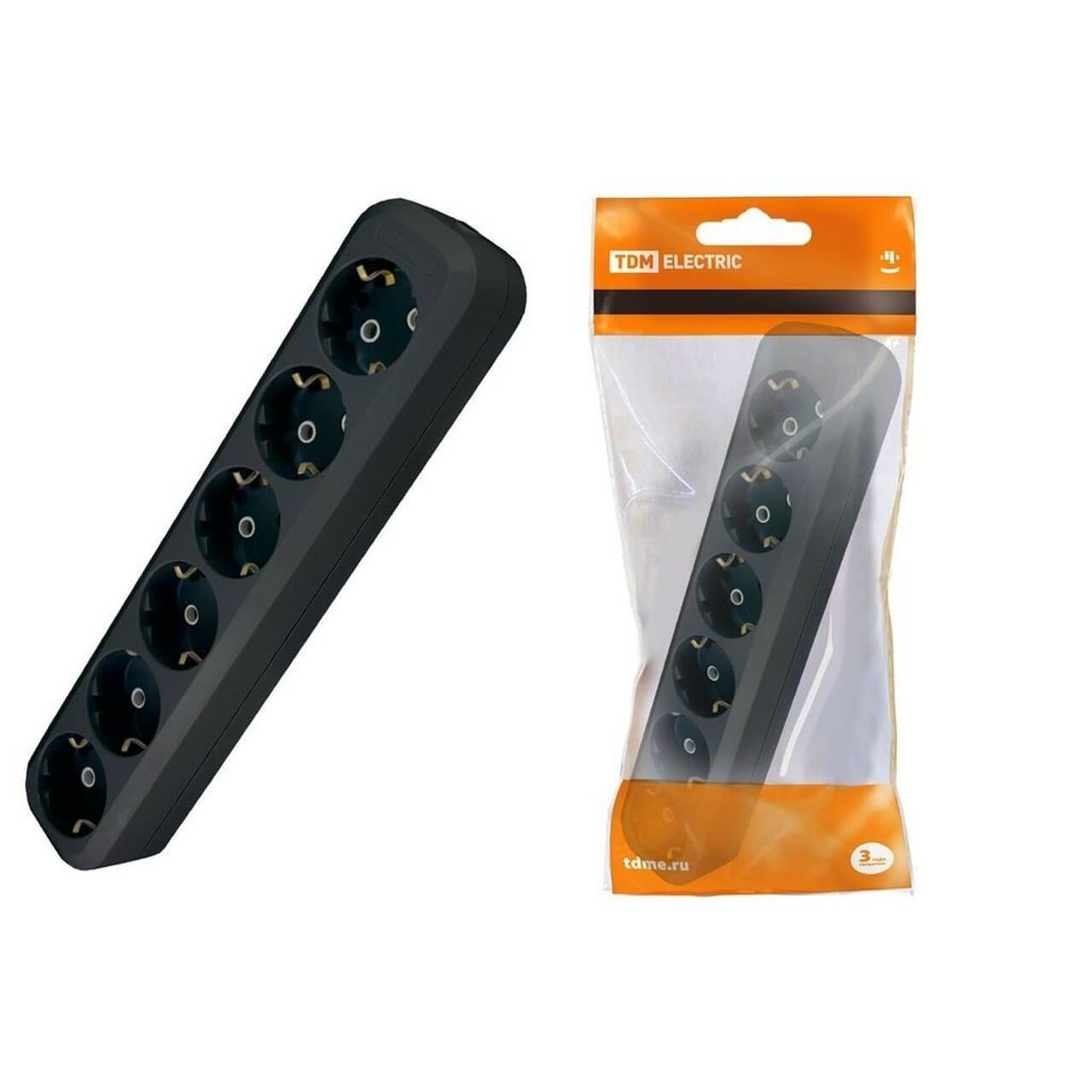 Колодка розеточная 6 гнезд 2П+З 16А 250В черная TDM