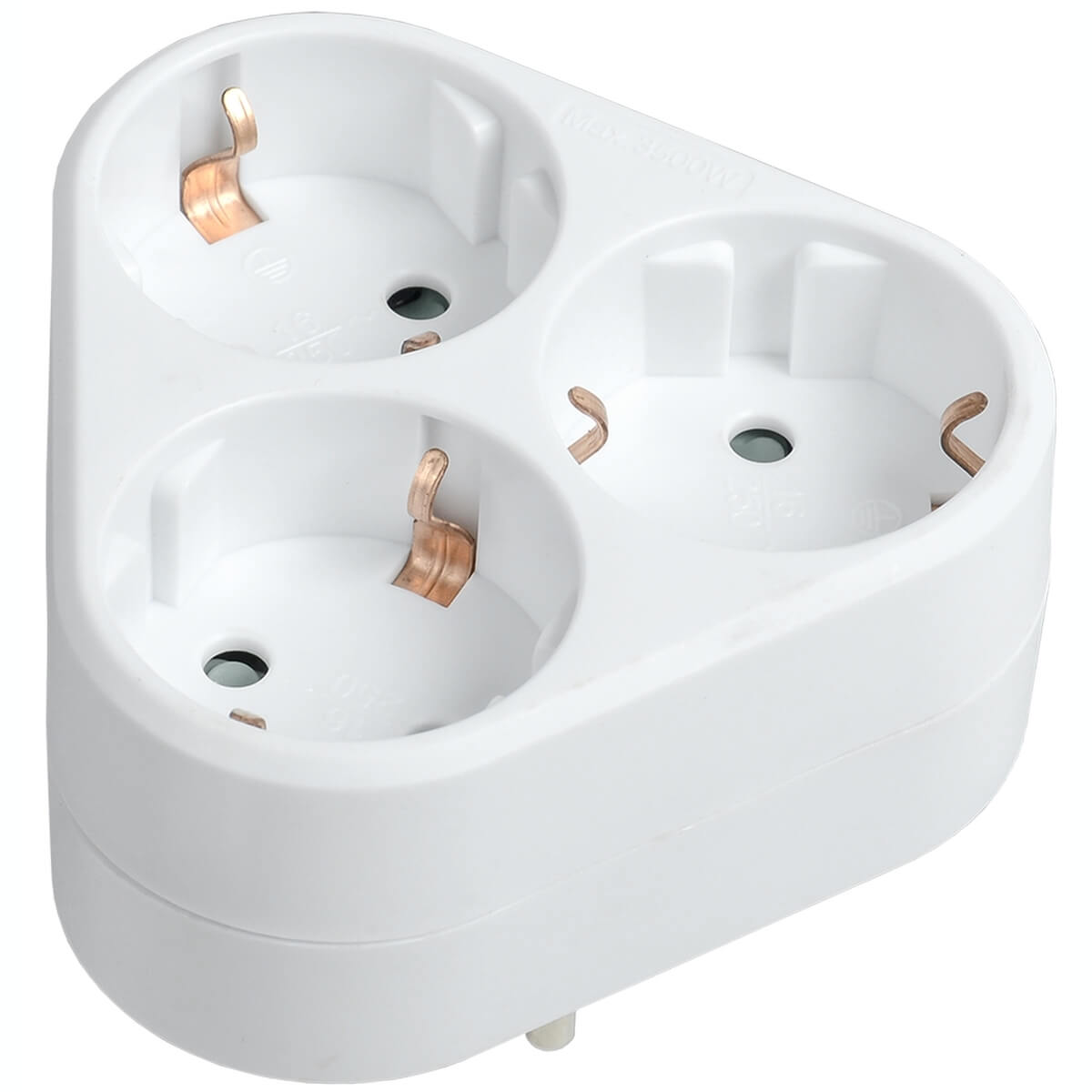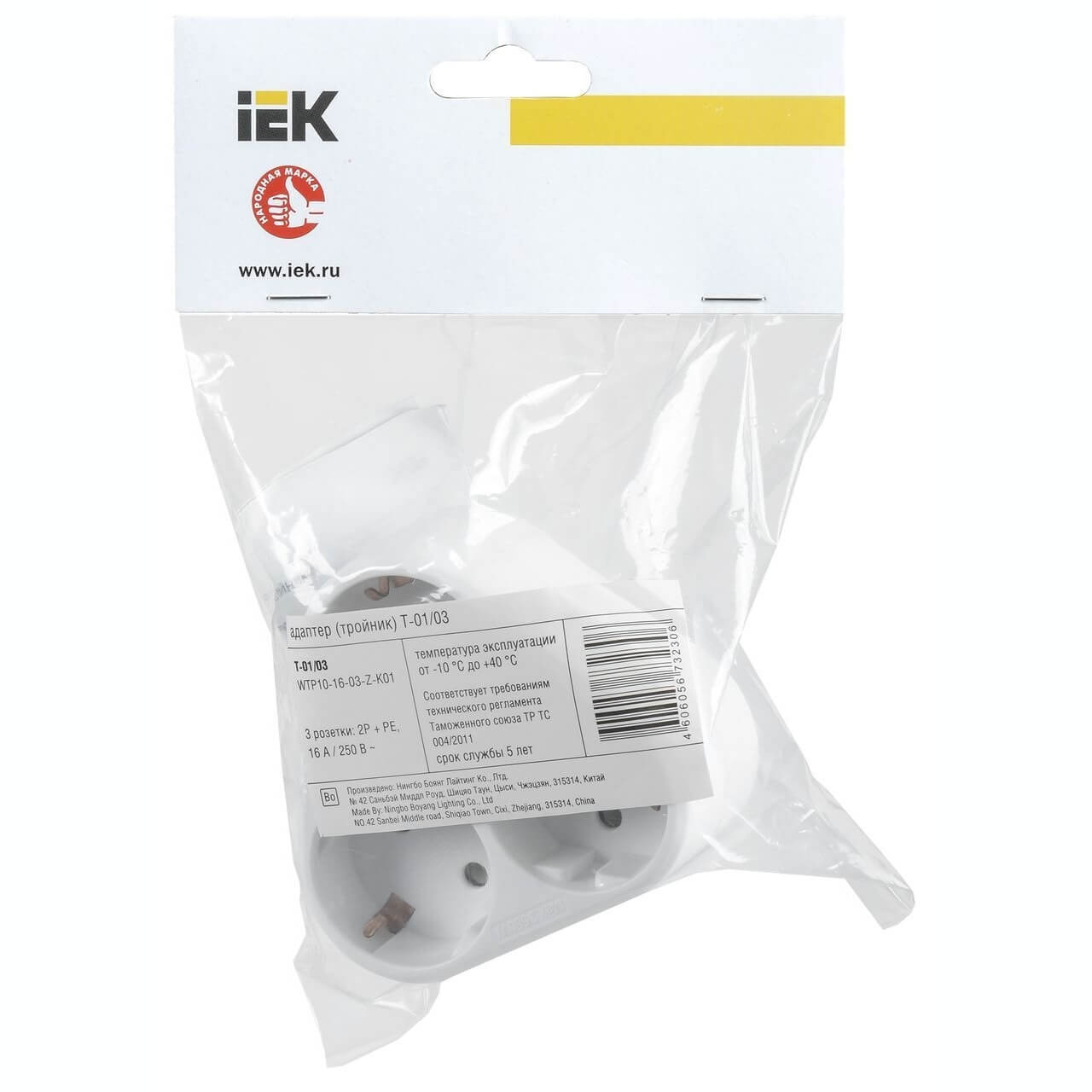 Тройник Т-01/03 3 места 2P+PE 16А треугольный белый IEK