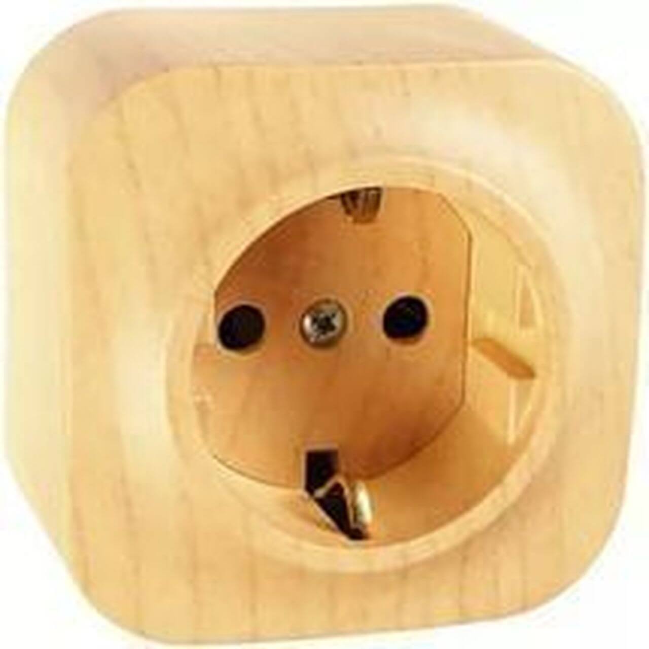 Розетка 2P+E нем. стд. со шторками- 16 A - 250 В. Цвет - дерево. Степень защиты IP 20.