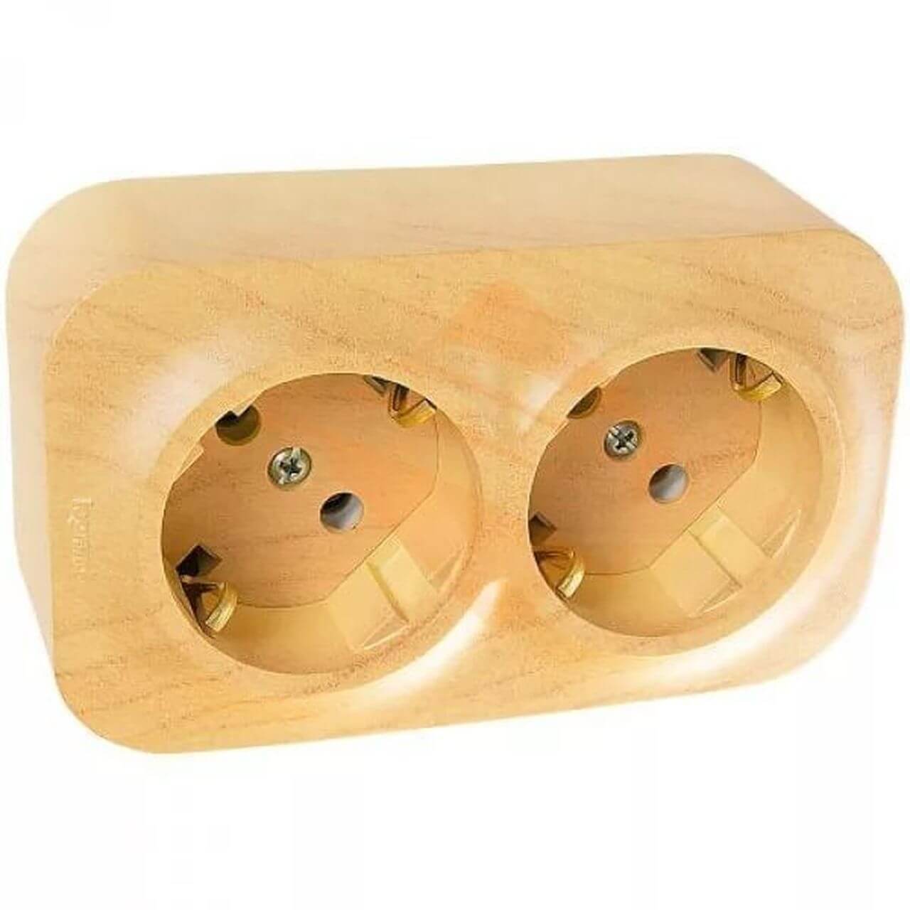 Розеточный блок 2 x 2К+З с защитными шторками - 16 A - 250 В. Цвет - дерево. Степень защиты IP 20.