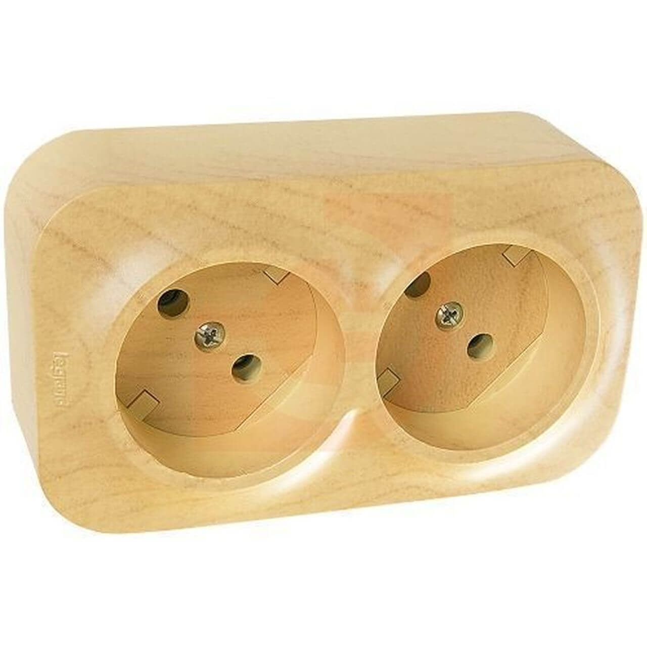 Розеточный блок 2 x 2К без шторок - 16 A - 250 В. Цвет - дерево. Степень защиты IP 20.
