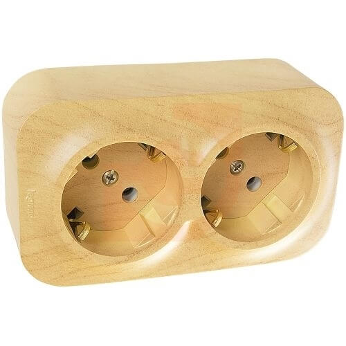 Розеточный блок 2 x 2К+З с защитными шторками - 16 A - 250 В. Цвет - дерево. Степень защиты IP 20.