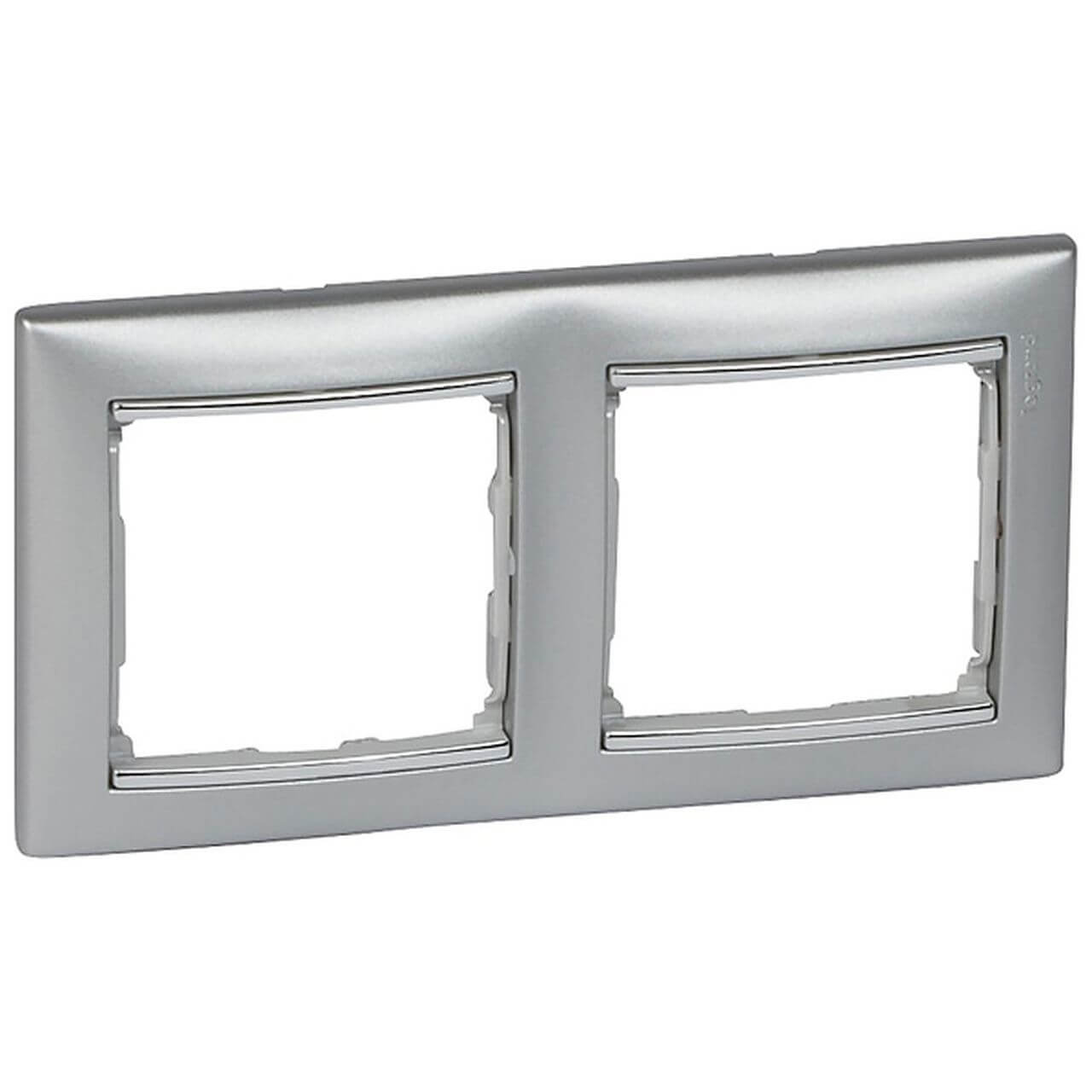 Valena - Рамка 2 поста верт/гориз, алюминий/серебро
