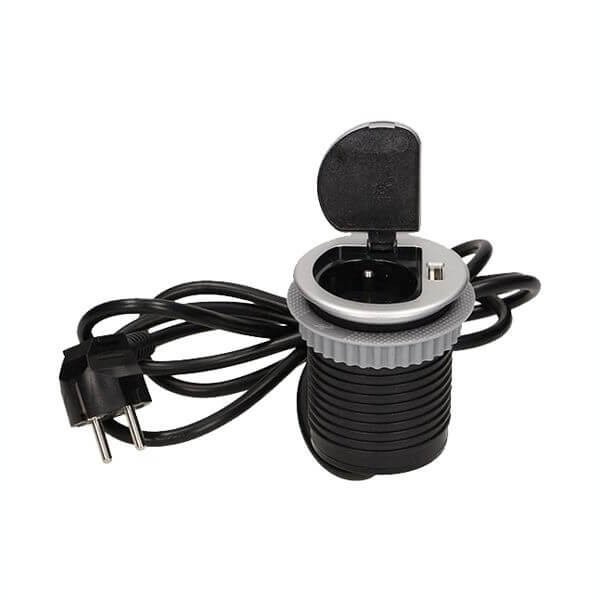 Блок розеточный встраиваемый 2P+E со шторками, USB 2, 4A, кабель 1, 9m, 3680Вт, пластик, алюминий