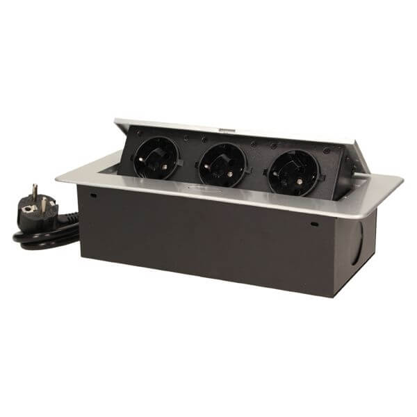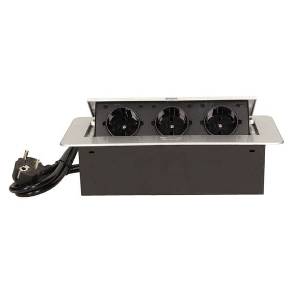 Блок розеточный встраиваемый 3x2P+E со шторками, кабель 1, 5m, 3600Вт, металл, алюминий