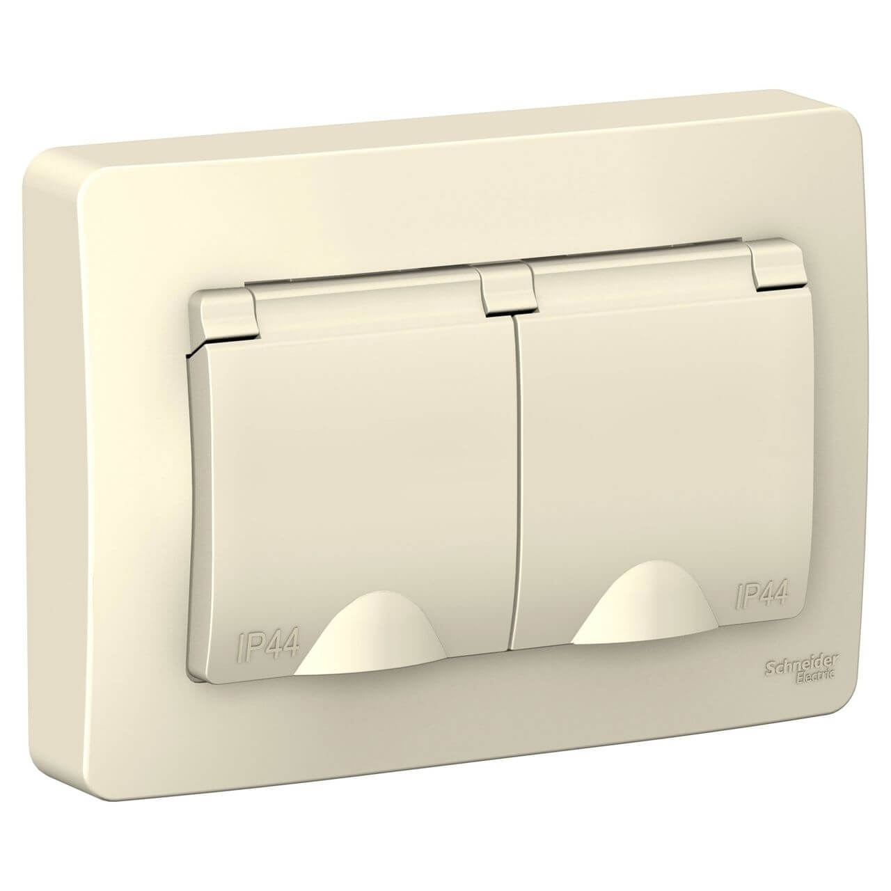 BLNRS441122 BLANCA С/У IP44 РОЗЕТКА двойная с заземл.со шторк,с крышками, 16А, 250В, МОЛОЧНЫЙ