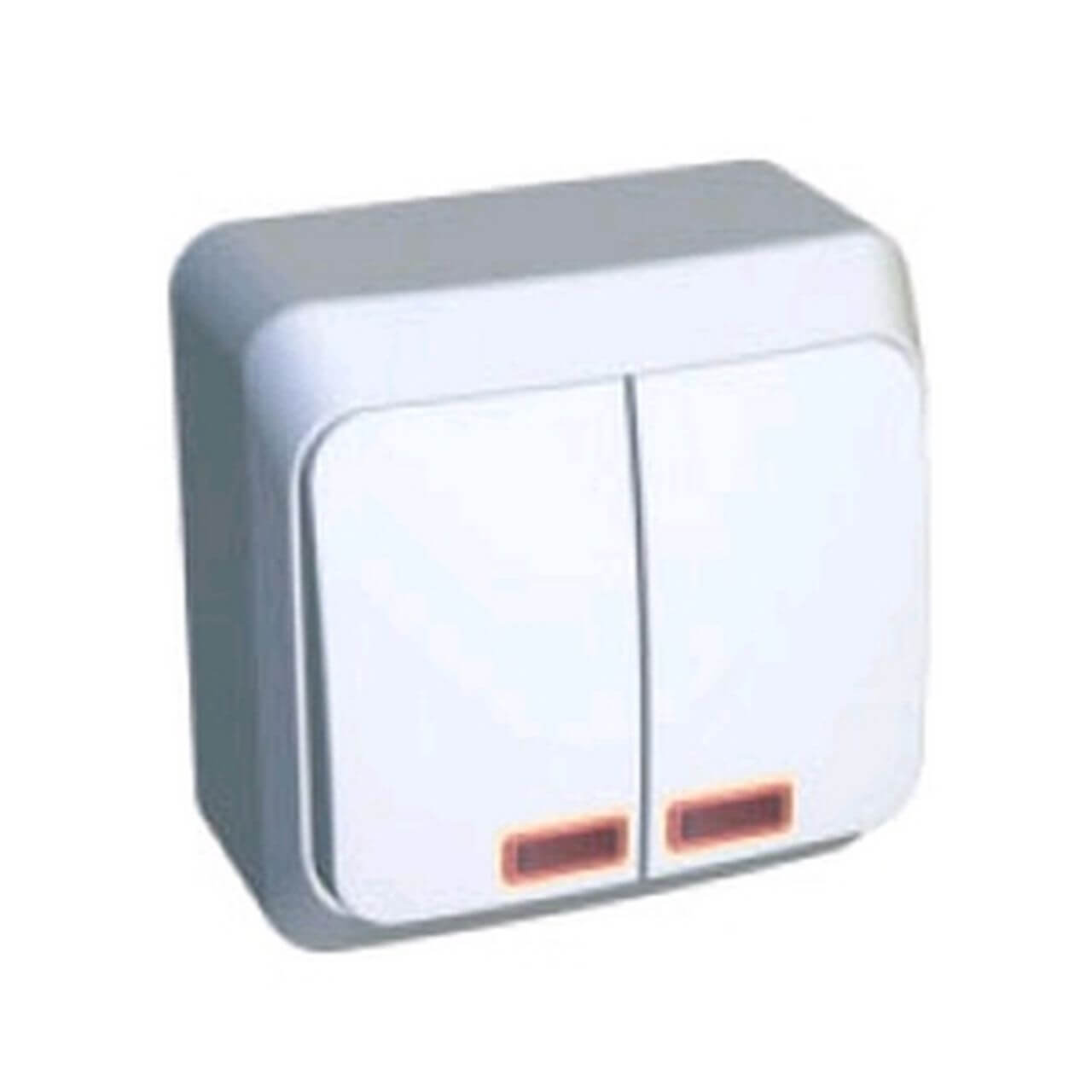 Выключатель 2-клавишный, с индикацией, открытая установка