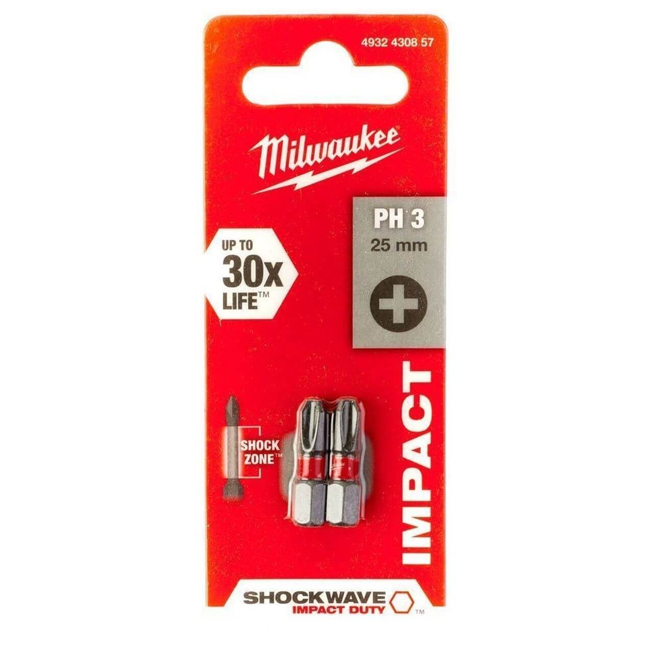 Бита ударная PH3 25 мм (2 шт.) MILWAUKEE SHOCKWAVE