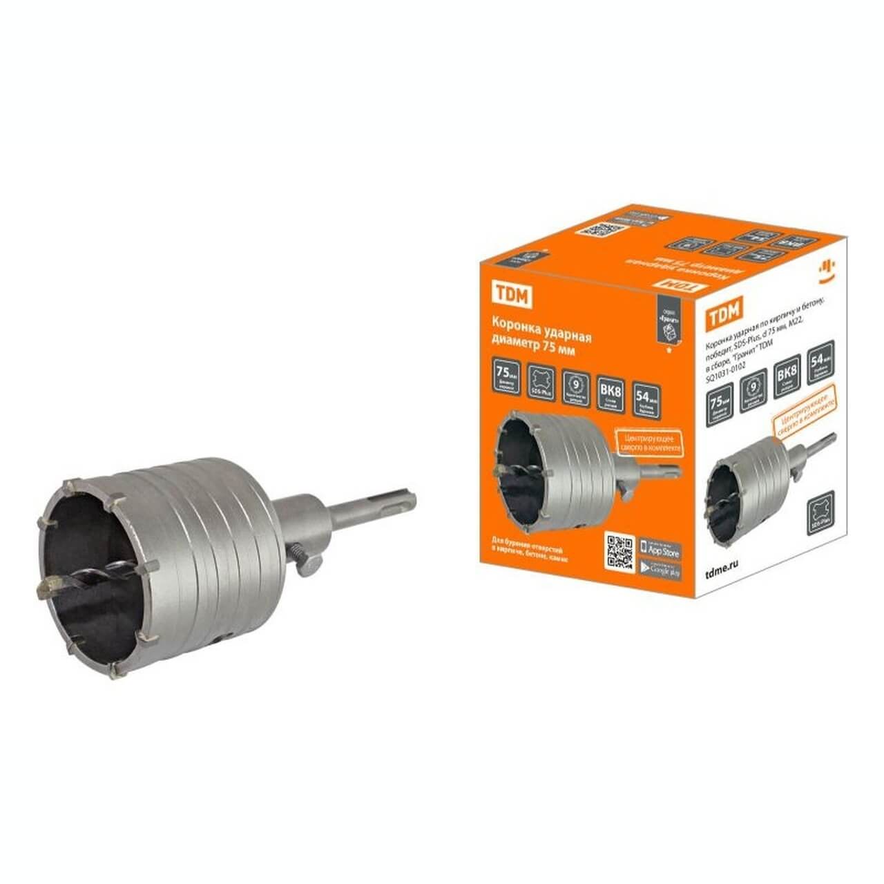 Вы можете купить Коронка ударная по кирпичу и бетону, победит, SDS-Plus, d 75 мм, М22, в сборе, Гранит TDM недорого в компании «Энергоснабмонтаж» – электрооборудование в Барановичах по доступным ценам.