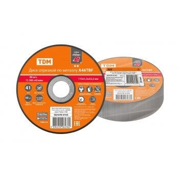 Вы можете купить Диск отрезной по металлу, 115х1,2х22,2, тип 41, A46TBF, серия Рубин, TDM недорого в компании «Энергоснабмонтаж» – электрооборудование в Барановичах по доступным ценам.