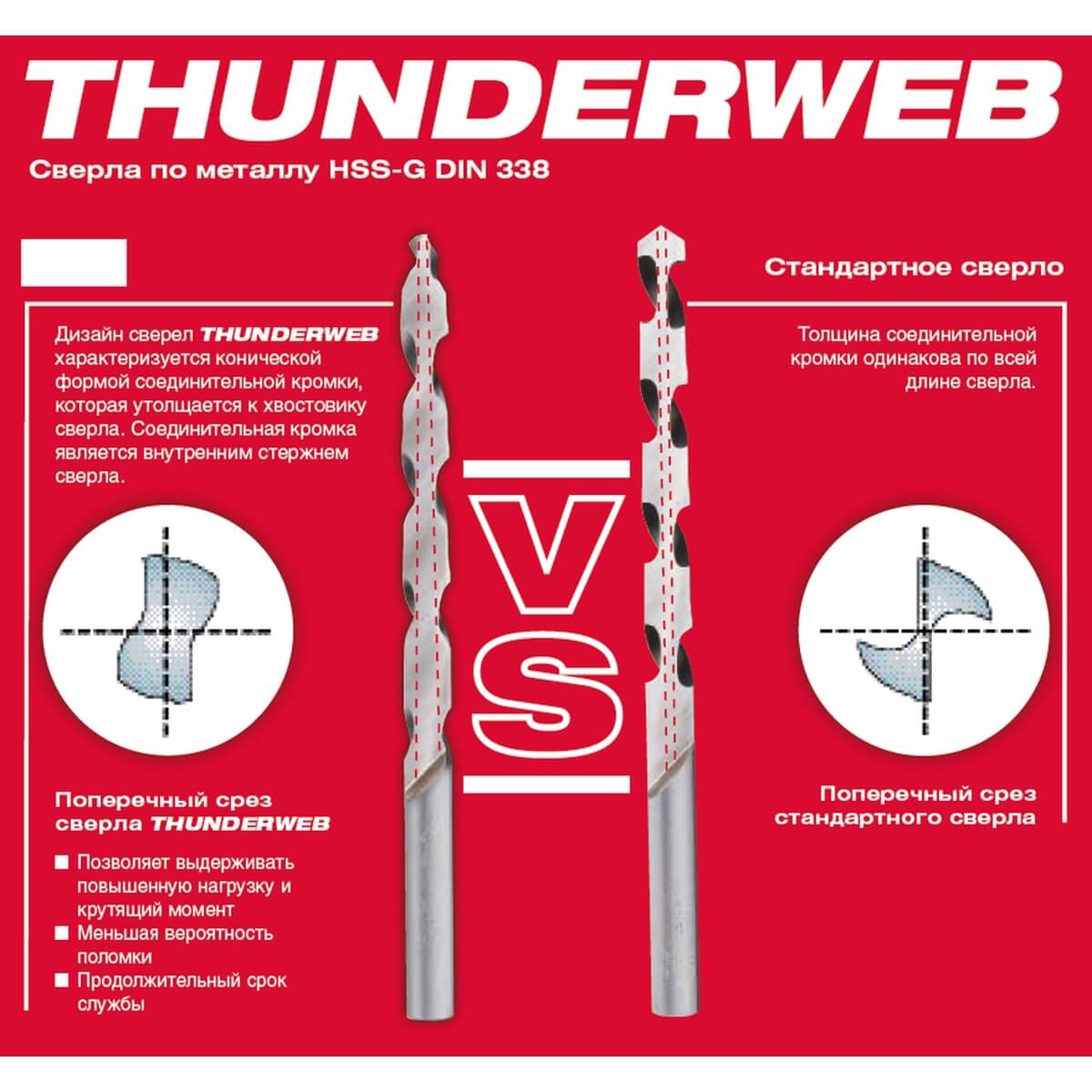 Дизайн сверел THUNDERWEB характеризуется конической формой соединительной кромки, которая утолщается к хвостовику сверла. Соединительная кромка является внутренним стержнем сверла.