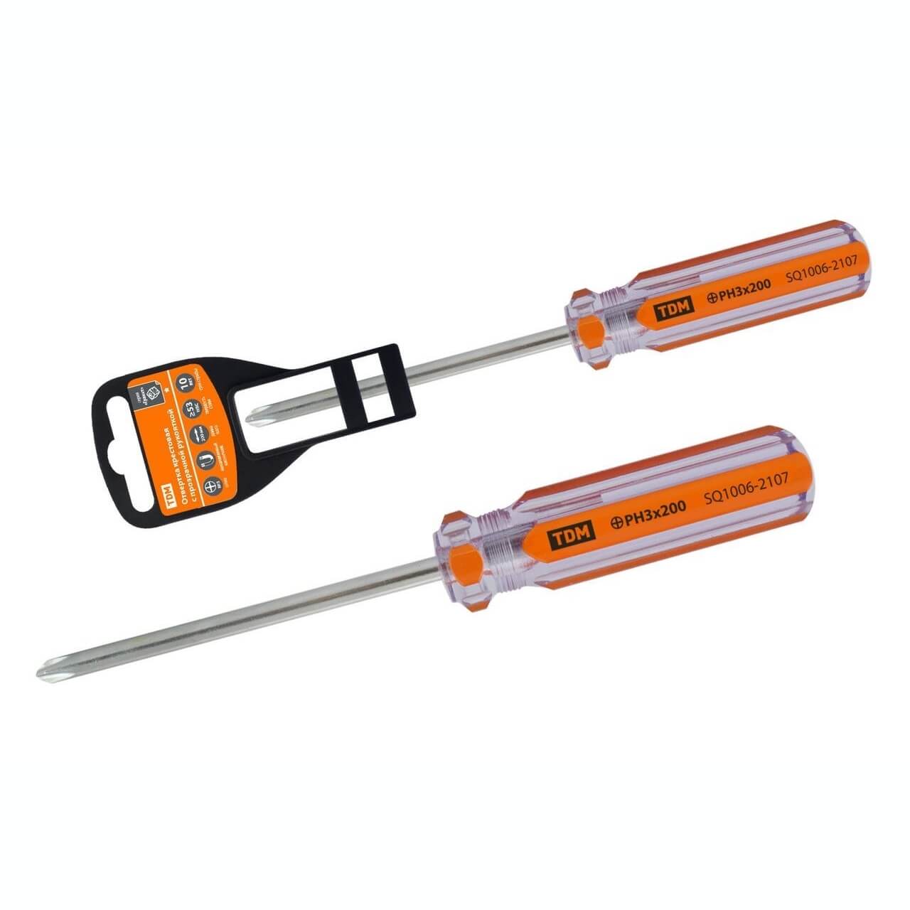 Отвертка крестовая, прозрачная рукоятка, углеродистая сталь, тип PH3 x 200 мм, серия Гранит TDM