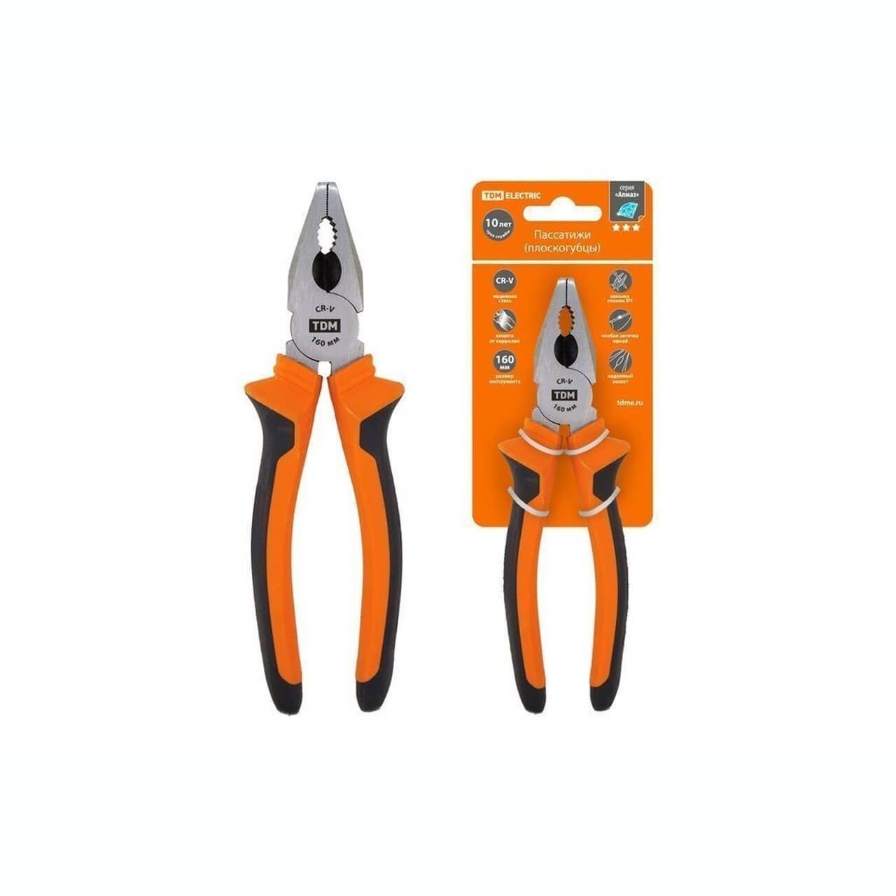 Пассатижи (плоскогубцы), с двухкомпонентными рукоятками, CR-V сталь 160 мм, серия Алмаз TDM