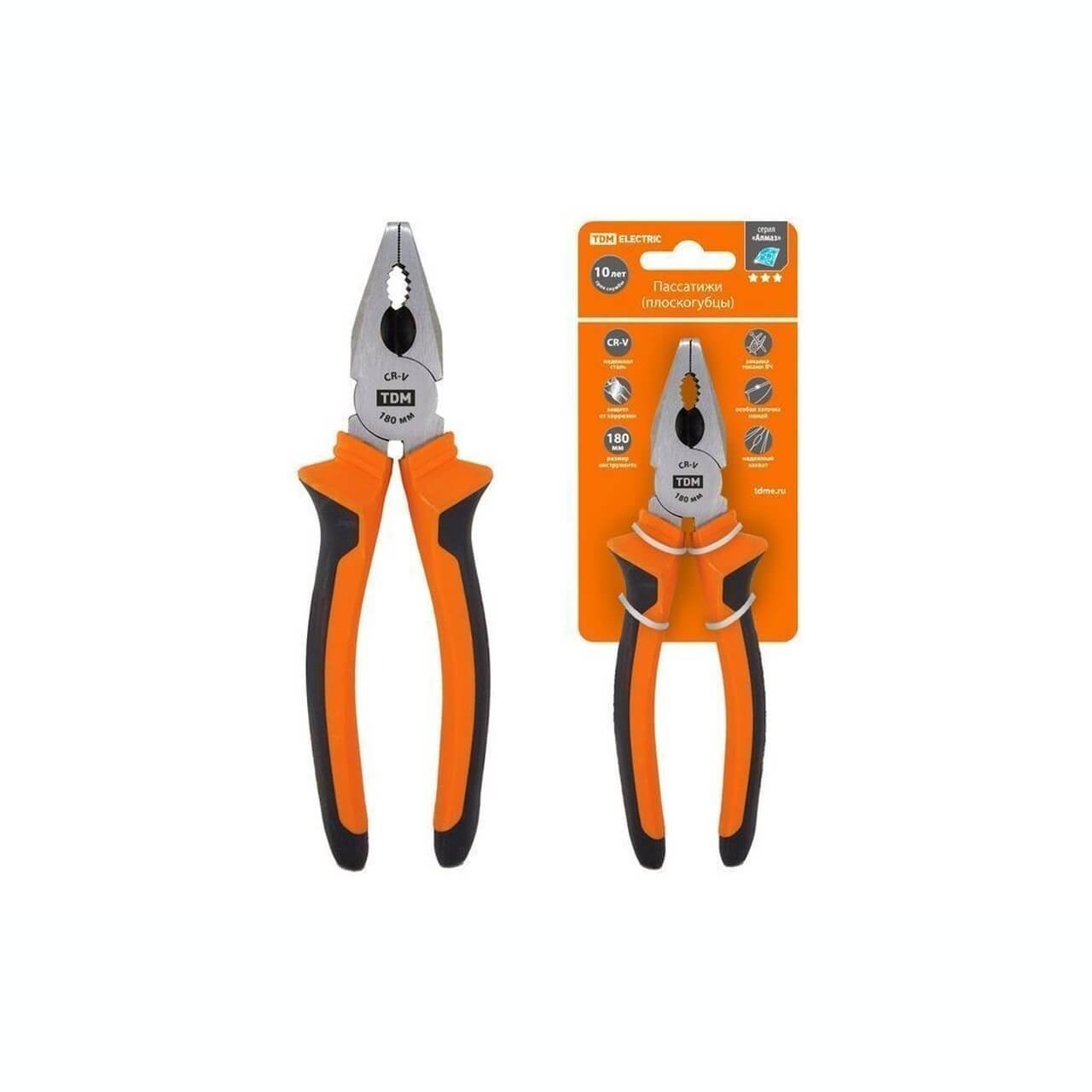 Пассатижи (плоскогубцы), с двухкомпонентными рукоятками, CR-V сталь 180 мм, серия Алмаз TDM