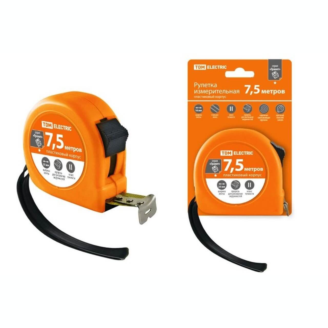 Вы можете купить Рулетка, длина 7.5 м, стальная лента, ширина 25 мм, пластиковый корпус, Гранит TDM недорого в компании «Энергоснабмонтаж» – электрооборудование в Барановичах по доступным ценам.