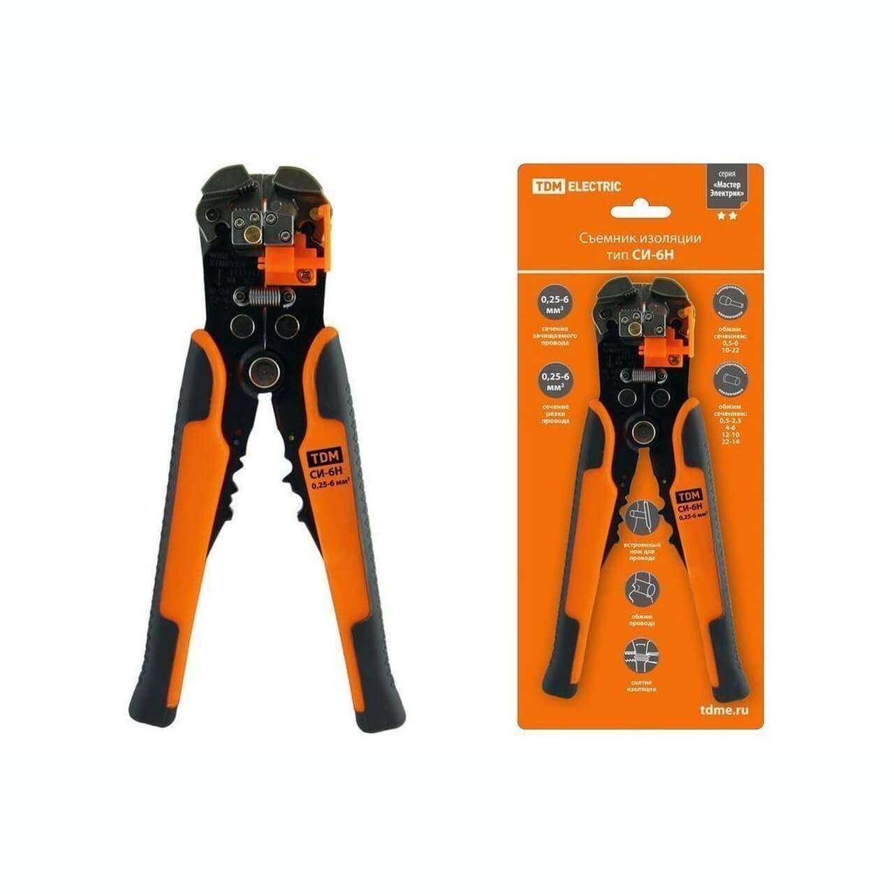 Съемник изоляции СИ-6Н, сечения: зачистки 0, 25-6 мм, обжима 0, 5-6 мм МастерЭлектрик TDM