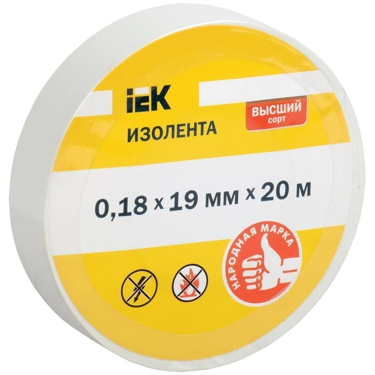 изолента 0, 18х19мм белая 20 метров ИЭК