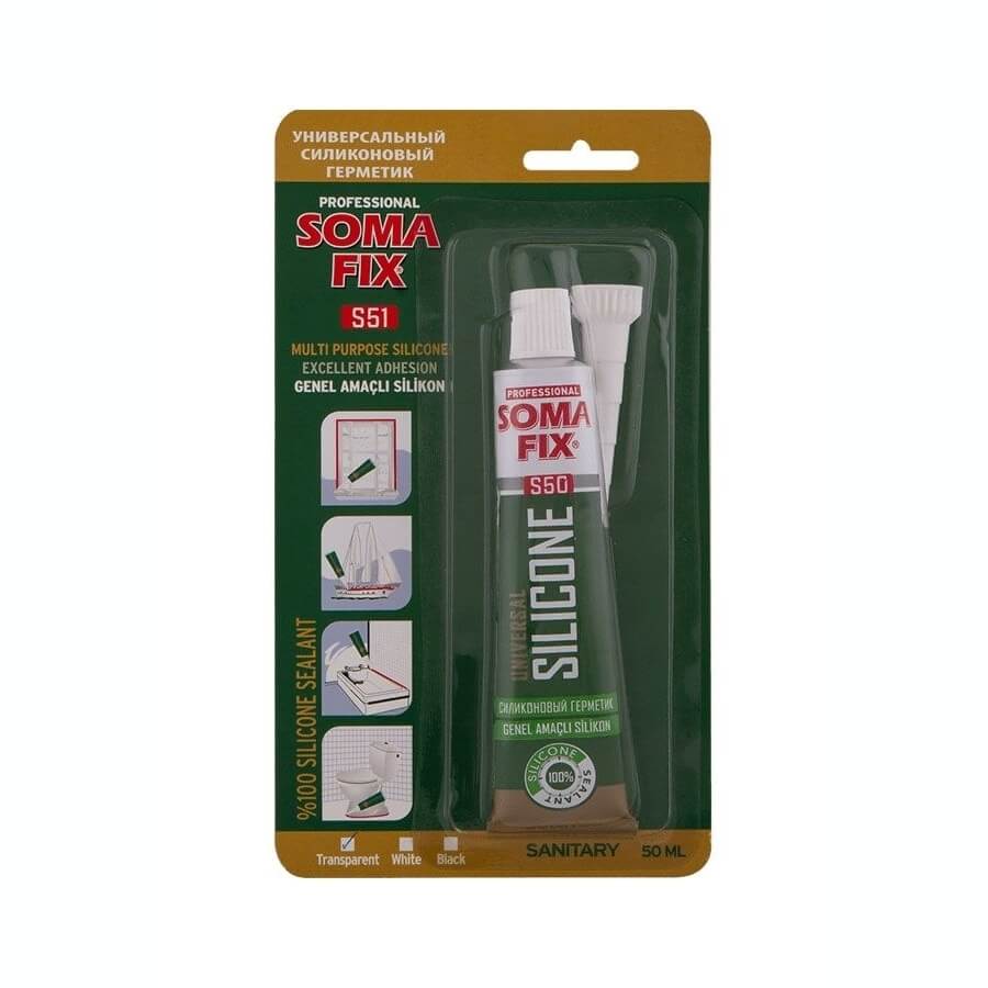 Герметик силиконовый SOMAFIX универсальный прозрачный 70гр/ 50 мл