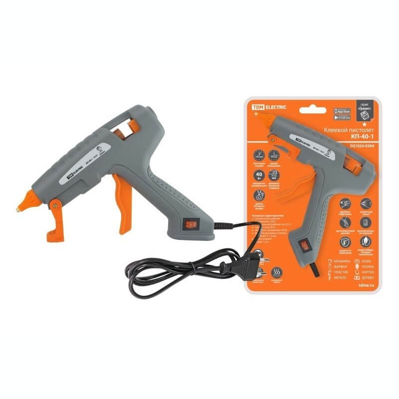Вы можете купить Клеевой пистолет КП-40-1, 7 мм, подставка, выключатель, шнур 1,3 м, 40 Вт, Т=220 С Гранит TDM недорого в компании «Энергоснабмонтаж» – электрооборудование в Барановичах по доступным ценам.