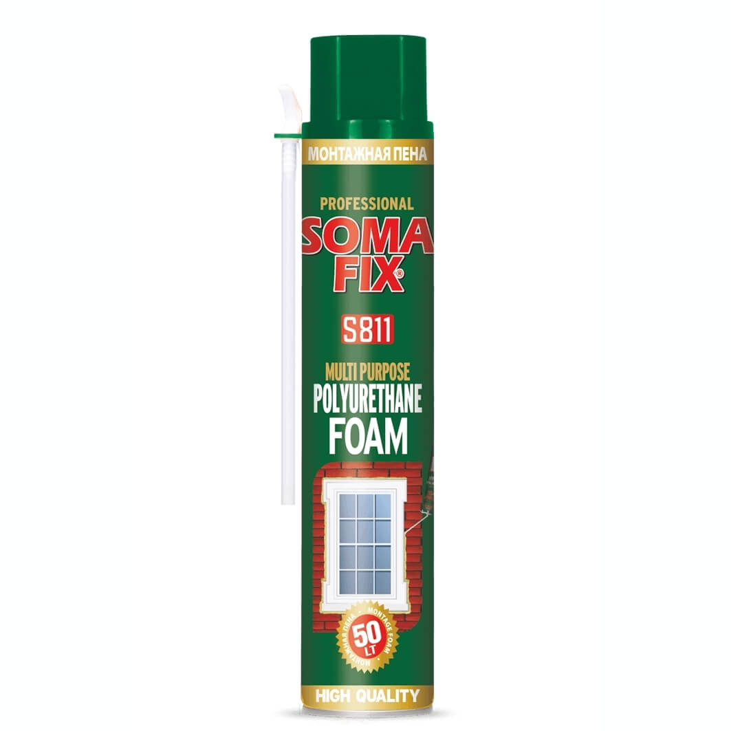 Рабочую поверхность очистить от пыли, жира и увлажнить водой. (Увлажнение поверхности и выпущенного полимера очень важно для ускорения химической реакции и получения эффективного результата). Взболтать баллон в течение 30 секунд. Прикрепить пластиковую направляющую трубку к клапану баллона. Перевернуть баллон вверх дном и надавить на клапан трубки. Излишки пены можно удалить специальной очищающей жидкостью SOMAFIX PU FOAM CLEANER. Из-за последующего расширения пену использовать более экономно.