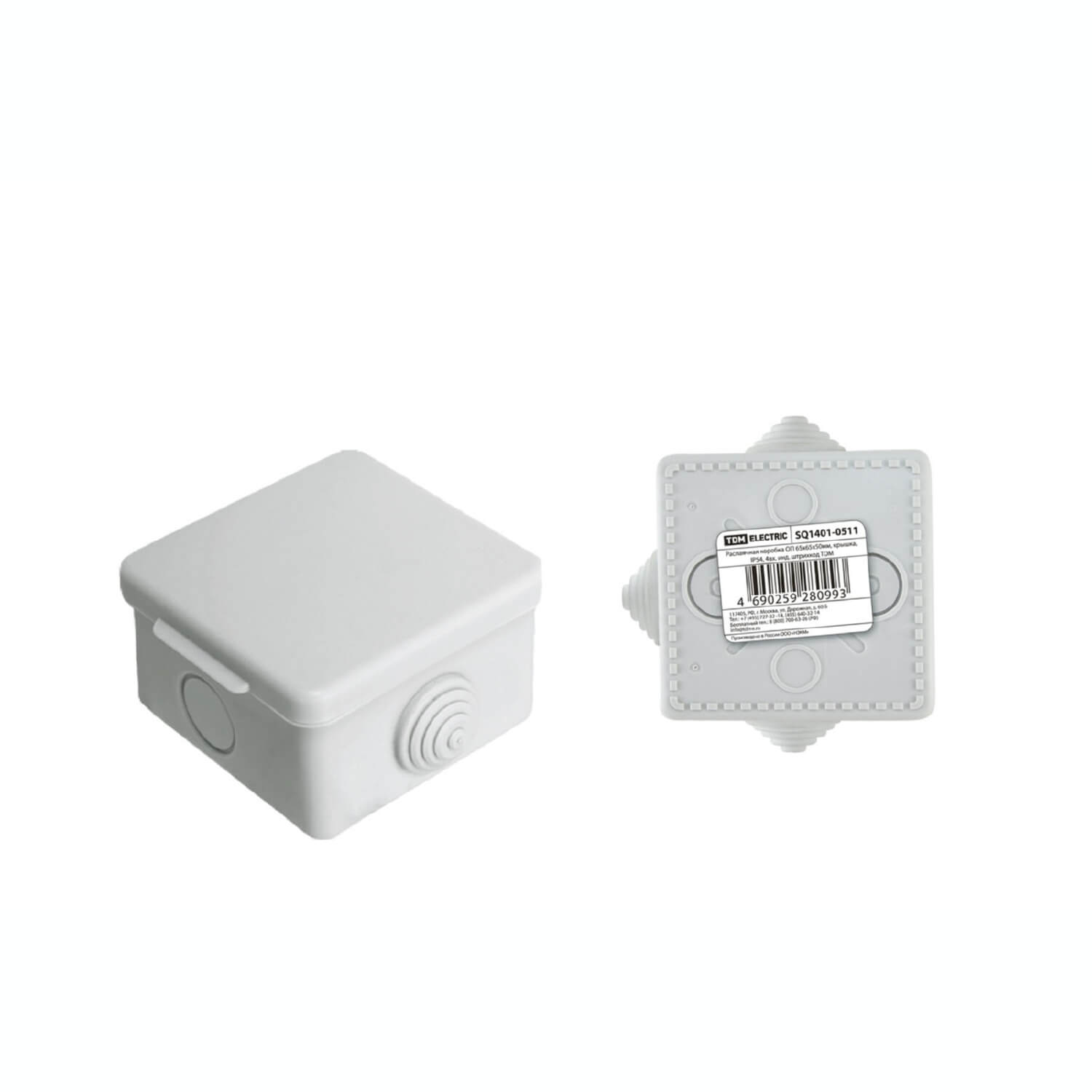 65х65х50мм, крышка, IP54, 4вх. инд. штрихкод, распаячная коробка ОП TDM