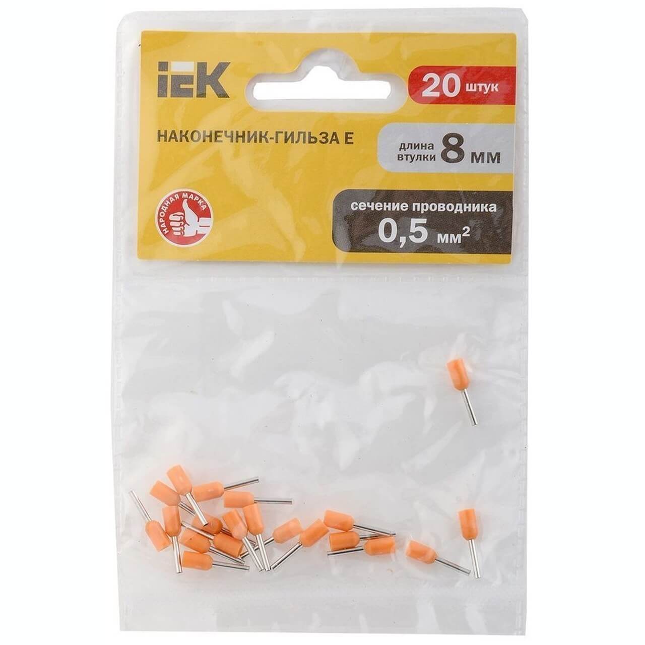 Наконечник-гильза Е 0508 0, 5мм2 (оранжевый, 20шт) IEK.