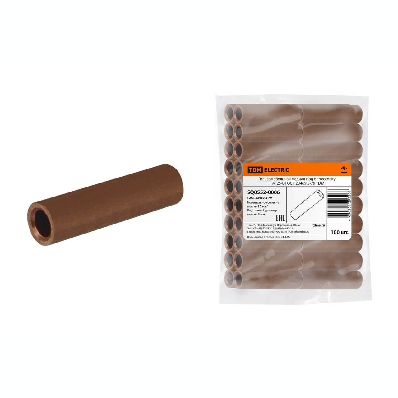 Гильза кабельная медная под опрессовку ГМ 25-8 ГОСТ 23469.3-79 TDM