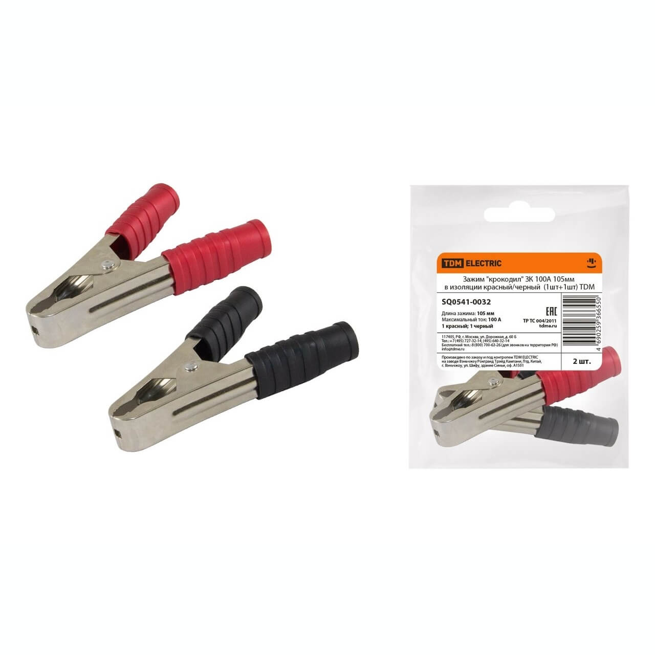 Зажим крокодил ЗК 100А 105мм в изоляции красный/черный (1шт+1шт) TDM