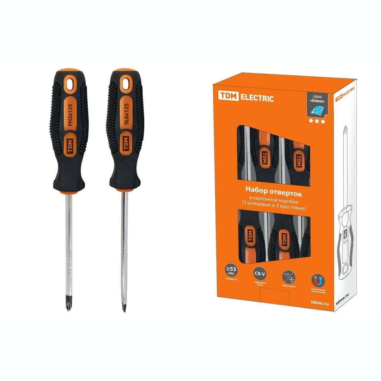 Набор отверток 6 шт.: SL:3х75;5х100;6х100, PH:0х75;1х100;2х100 (карт. коробка), CR-V Алмаз TDM