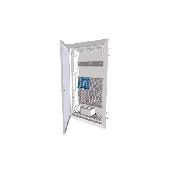 Щит мультимед. встраиваемый KLV-36UPM-F, TS35+2xМП., розетка x2, крепление роутера, плоская мет. дверь, RAL9016, IP30