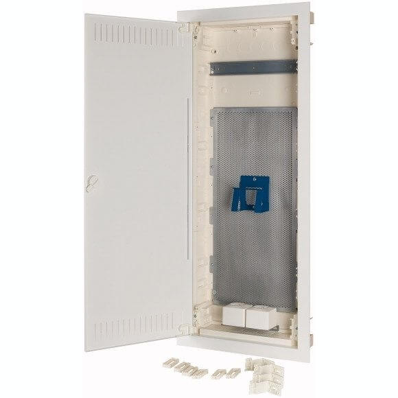 Щит мультимед. встраиваемый KLV-60UPM-F, TS35+4xМП., розетка x2, крепление роутера, плоская мет. дверь, RAL9016, IP30