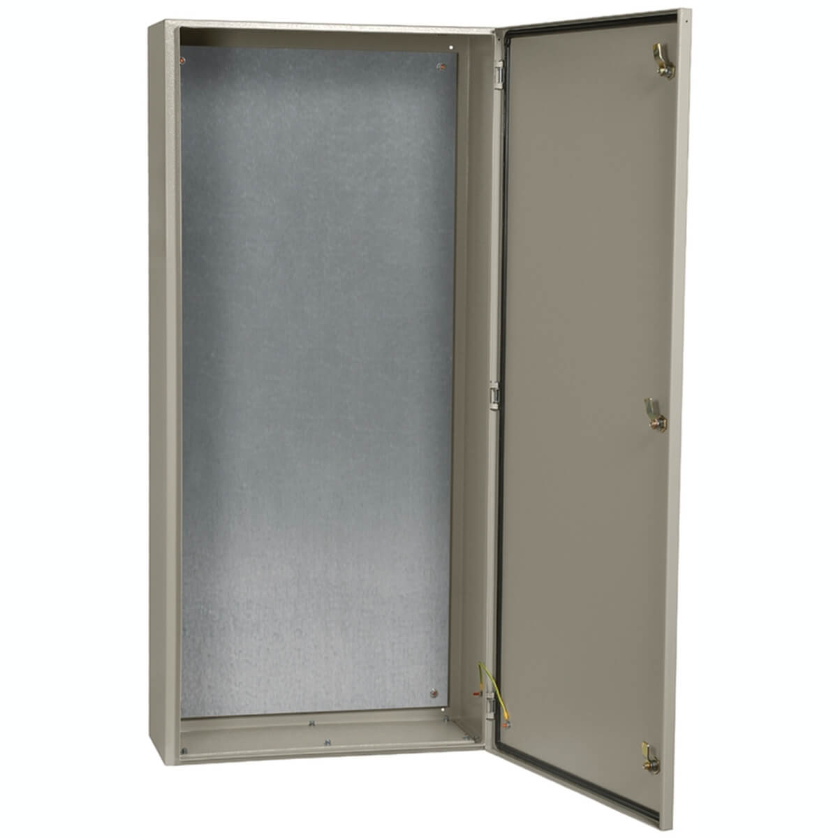 Сварной металлический корпус со съемной монтажной панелью. Дверца корпуса запирается на замок. Ключ замка имеет единый секрет.