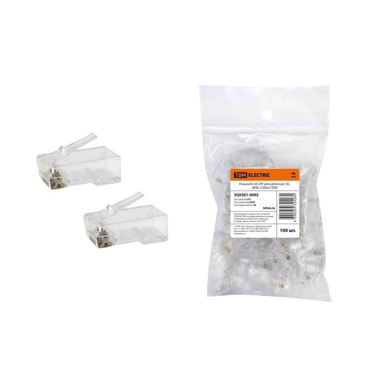Вы можете купить Разъем RJ-45 UTP для кабеля кат. 5Е, 8P8C (100шт) TDM недорого в компании «Энергоснабмонтаж» – электрооборудование в Барановичах по доступным ценам.