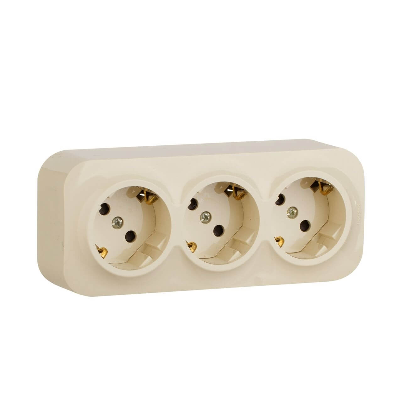 Розеточный блок 3 x 2К+З с защитными шторками - 16 A - 250 В. Цвет - слоновая кость. Степень защиты IP 20.