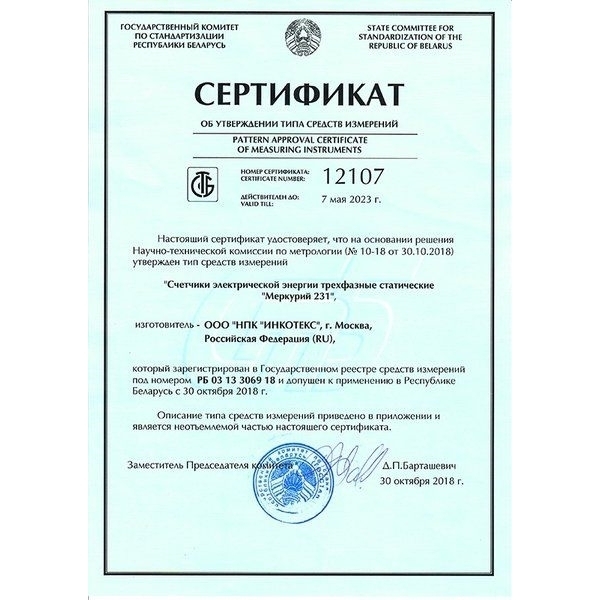 Счетчик электроэнергии Меркурий 231 ART-01 ш 2 Тарифа МСК