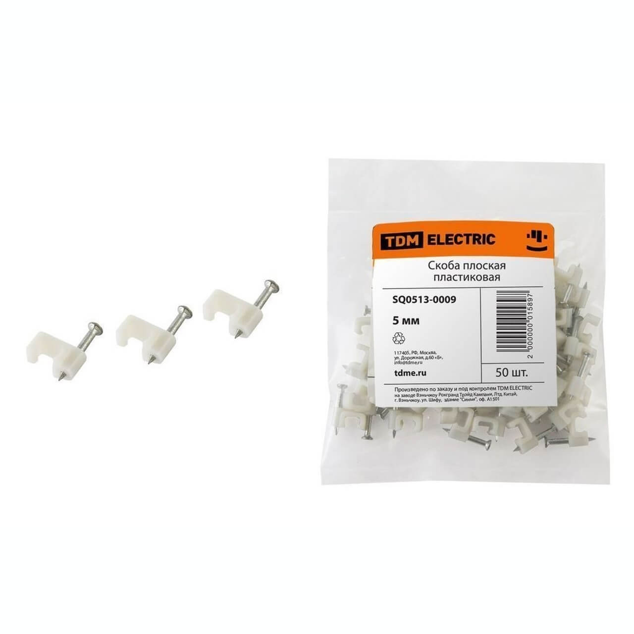 Скоба 5мм плоская пластиковая (50шт) TDM